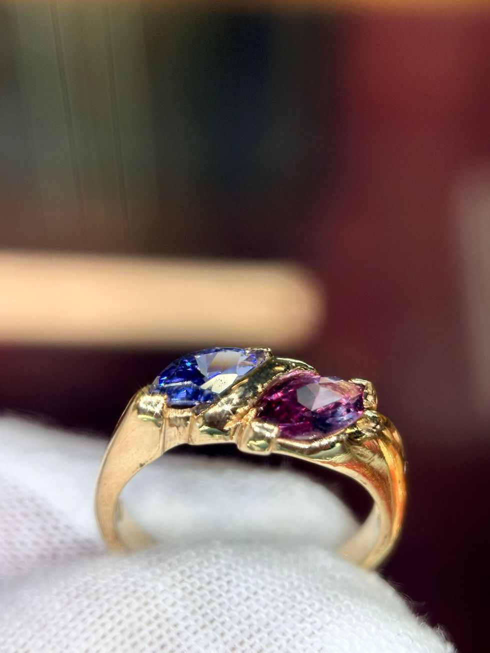 Natural Tanzanite & Amethyst Bypass Ring | Marquise Cut Gemstones | 14K Gold