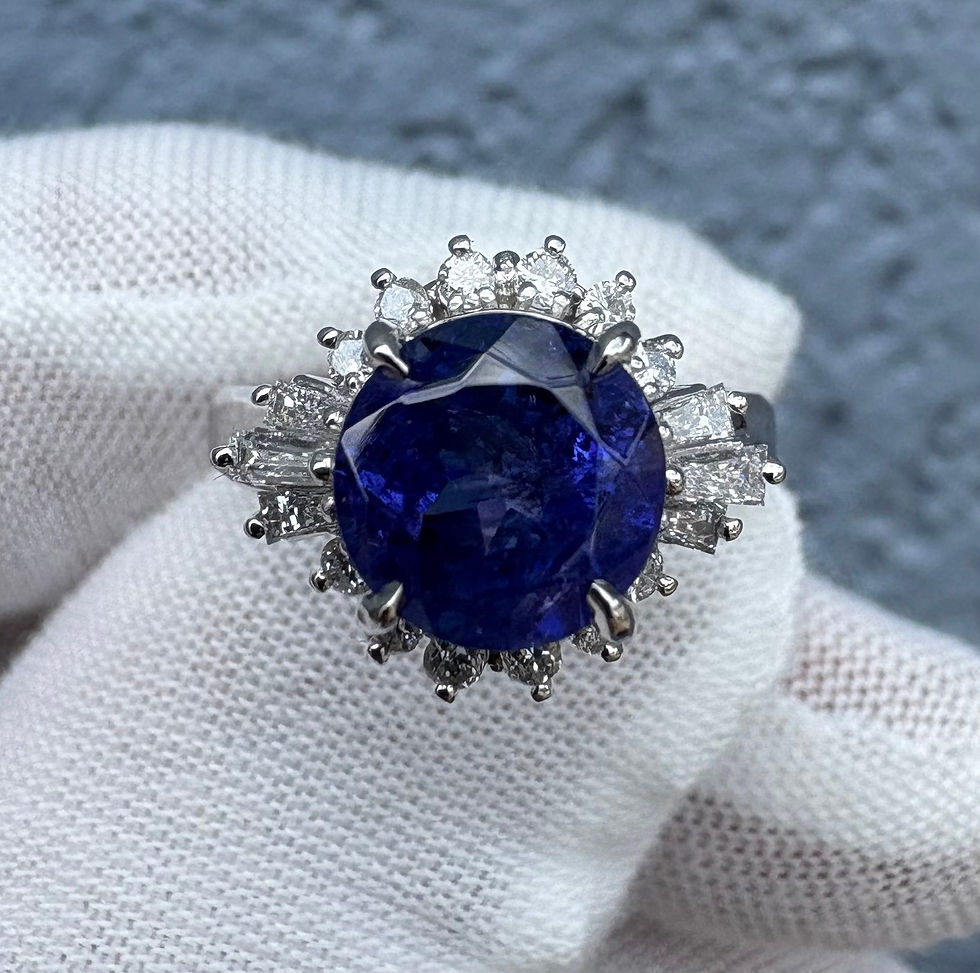 2.82cttw Estate Platinum Tanzanite and Diamond Ring