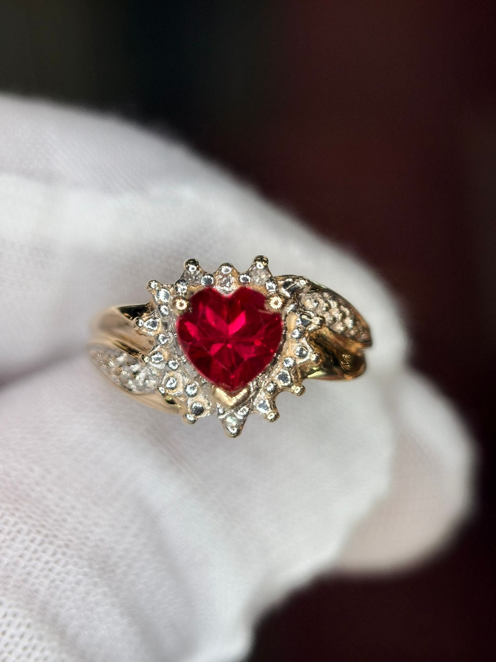 1.00CT Lab-Grown Ruby & Natural Diamond Accent Ring | 10K Gold | Heart-Cut Ruby